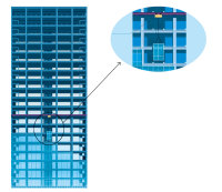 ●钢结构网壳体系与主体结构的核心筒之间设置拉接杆件,以保持系统的稳定性;