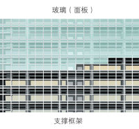 点支撑式无框玻璃幕墙可简称为点支式玻璃幕墙,玻璃由设置在其角部及边部采用金属支撑装置支撑,并通过这些支撑装置连接固定在幕墙支撑结构上,玻璃所承受的荷载通过连接点处的支撑装置传递到幕墙支撑结构上。面板玻璃可采用单层玻璃、中空玻璃、夹层玻璃等等,玻璃一般需要经过钢化处理。