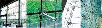 ●幕墙整体通透性高,结构简洁轻巧。每个不锈钢爪臂可同时把持上下三块甚至四块玻璃,上下爪臂之间断续布置,且由竖向承重钢索拉接在一起。对应于室内主视区的玻璃的后部没有支撑结构,主视区的通透感更强。